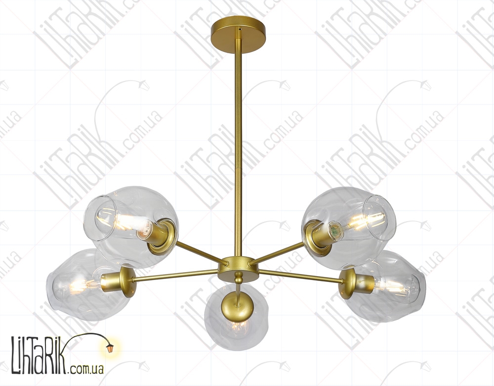 Светильник подвесной круглого (шарообразного) вида впишется в любую дизайнерскую среду. Подходит для вашей гостиной, кухни, спальни. Модель представлена в золотых, прозрачных тонах. Светильник изготовлен из металла, стекла высокого качества