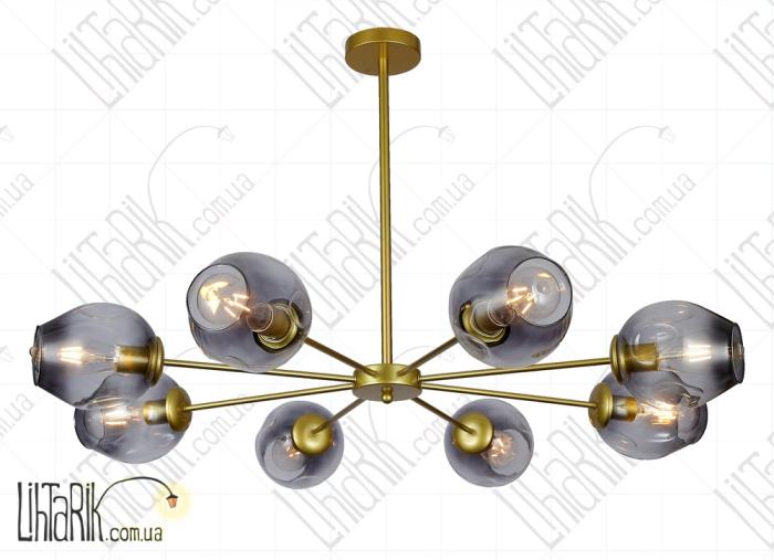 Светильник подвесной круглого (шарообразного) вида впишется в любую дизайнерскую среду. Подходит для вашей гостиной, кухни, спальни. Модель представлена в золотых, черных тонах. Светильник изготовлен из металла, стекла высокого качества