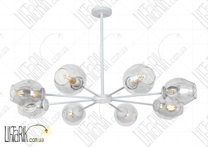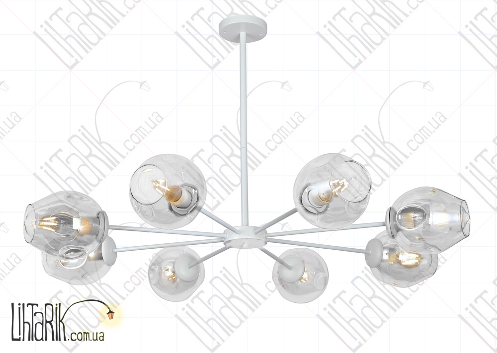 Светильник подвесной круглого (шарообразного) вида впишется в любую дизайнерскую среду. Подходит для вашей гостиной, кухни, спальни. Модель представлена в белых, прозрачных тонах. Светильник изготовлен из металла, стекла высокого качества