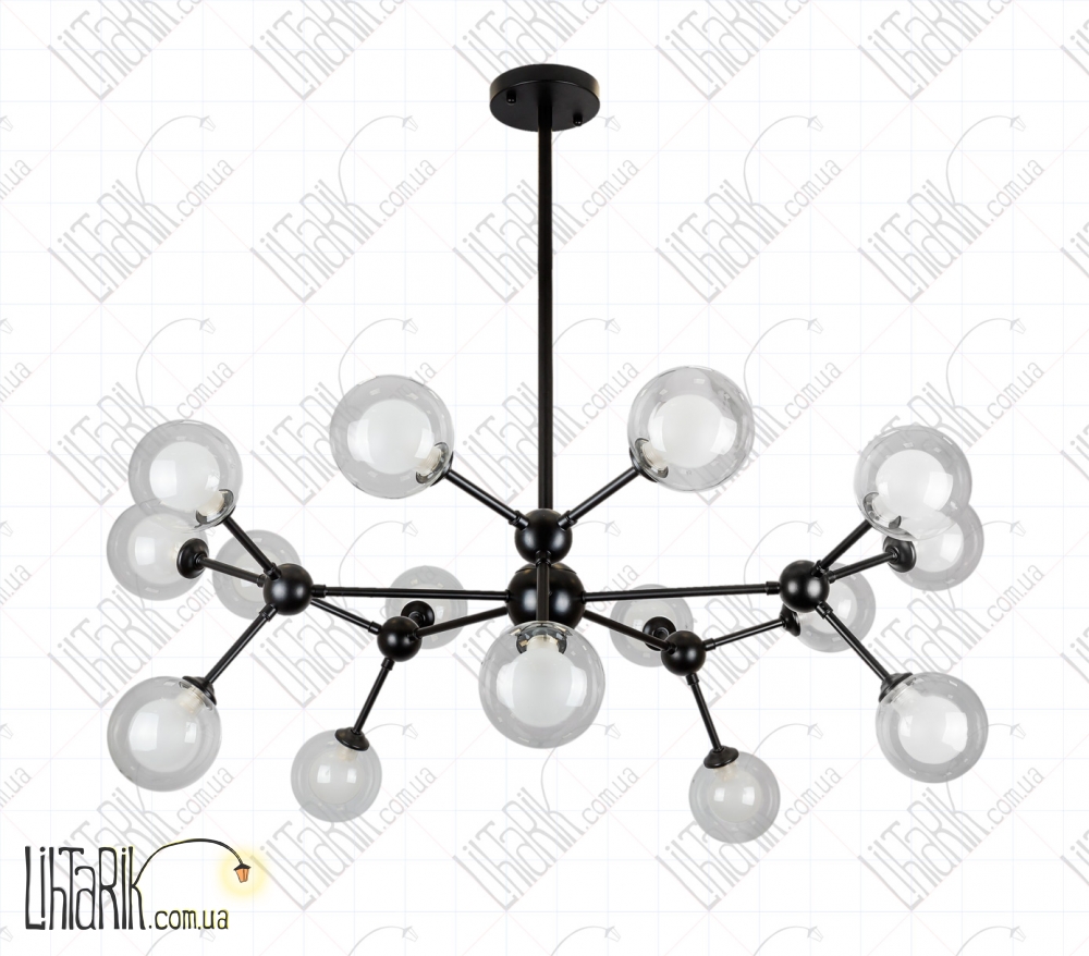 Подвесной светильник оригинальной формы, круглого (шарообразного) вида, паукообразный дизайн максимально осветит пространство и впишется в любую дизайнерскую среду. Подходит для вашей гостиной, спальни. Модель представлена в черных тонах. Светильник изготовлен из металла, стекла высокого качества