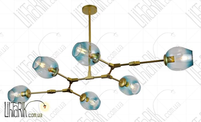 Светильник подвесной круглого (шарообразного) вида впишется в любую дизайнерскую среду. Подходит для вашей гостиной, кухни, спальни. Модель представлена в золотых тонах. Светильник изготовлен из металла, стекла высокого качества