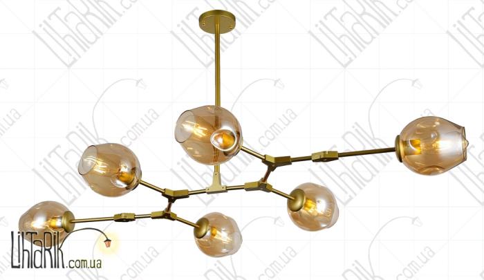 Светильник подвесной круглого (шарообразного) вида впишется в любую дизайнерскую среду. Подходит для вашей гостиной, кухни, спальни. Модель представлена в золотых тонах. Светильник изготовлен из металла, стекла высокого качества