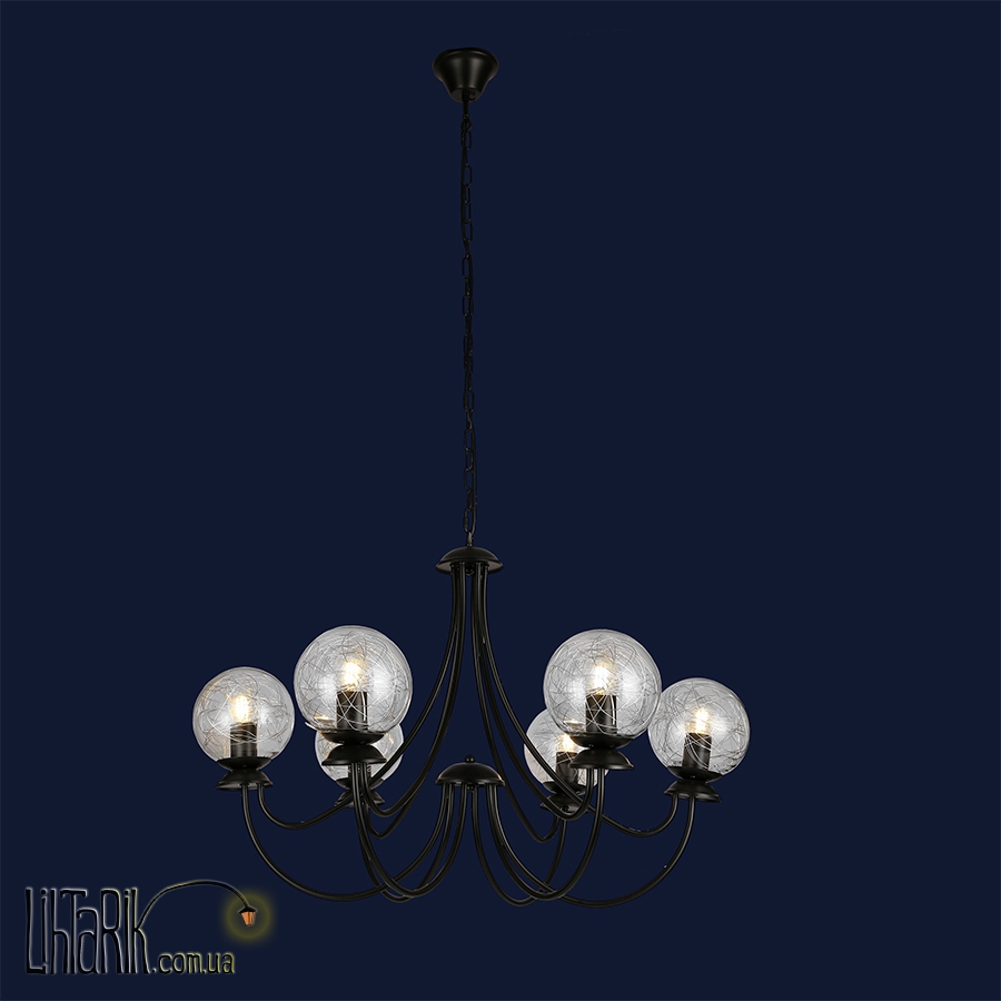 Припотолочная люстра круглого (шарообразного) вида впишется в любую дизайнерскую среду. Подходит для вашей гостиной, спальни. Модель представлена в прозрачных, черных тонах. Светильник изготовлен из металла, стекла высокого качества