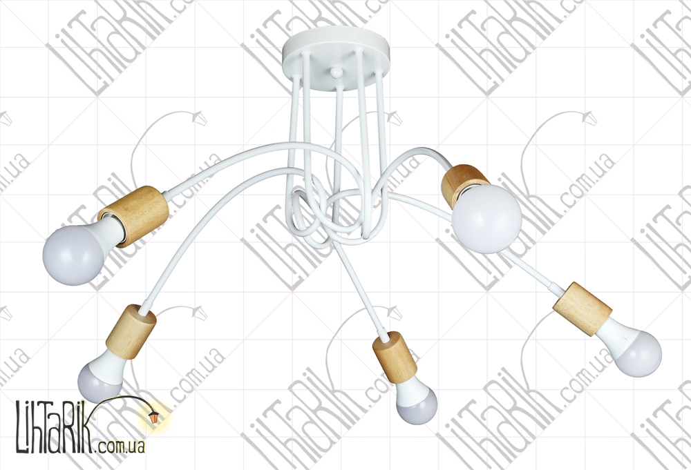 Припотолочная люстра паукообразный дизайн максимально осветит пространство и впишется в любую дизайнерскую среду. Подходит для вашей гостиной, кухни, спальни. Модель представлена в белых тонах. Светильник изготовлен из дерева, металла высокого качества