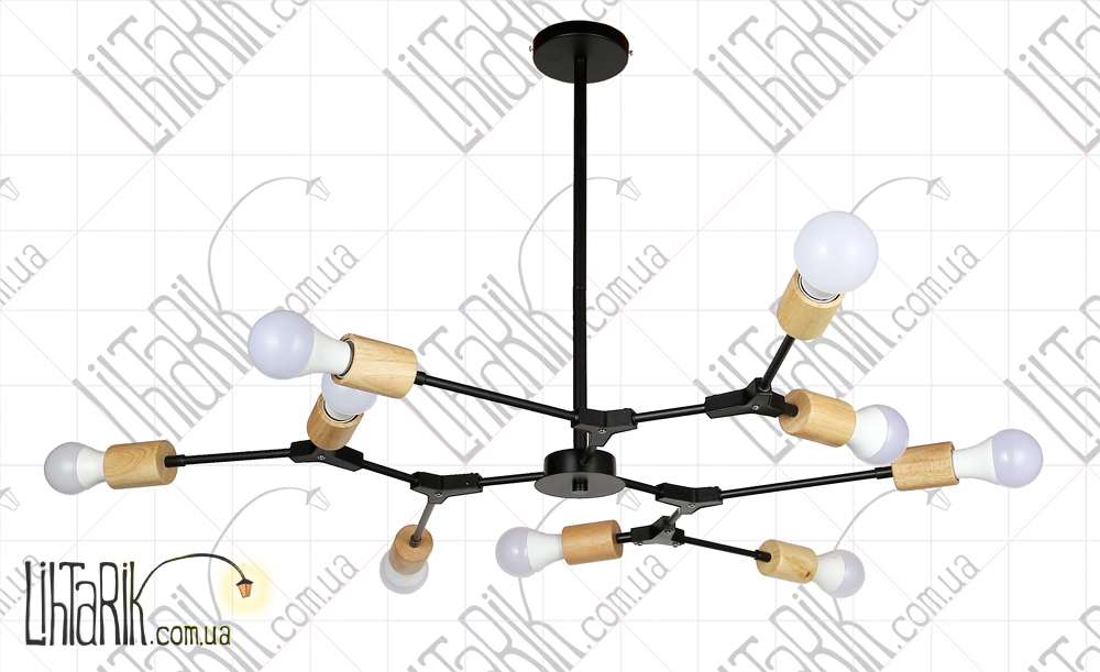 Припотолочная люстра паукообразный дизайн максимально осветит пространство и впишется в любую дизайнерскую среду. Подходит для вашей гостиной, кухни, спальни. Модель представлена в черных тонах. Светильник изготовлен из дерева, металла высокого качества