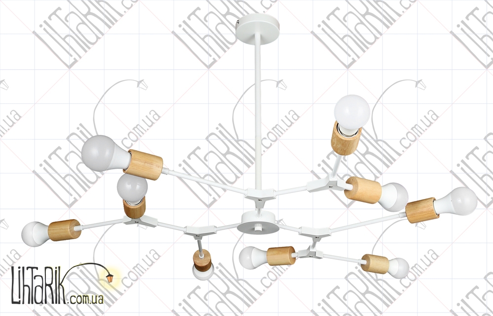 Припотолочная люстра паукообразный дизайн максимально осветит пространство и впишется в любую дизайнерскую среду. Подходит для вашей гостиной, кухни, спальни. Модель представлена в белых тонах. Светильник изготовлен из дерева, металла высокого качества