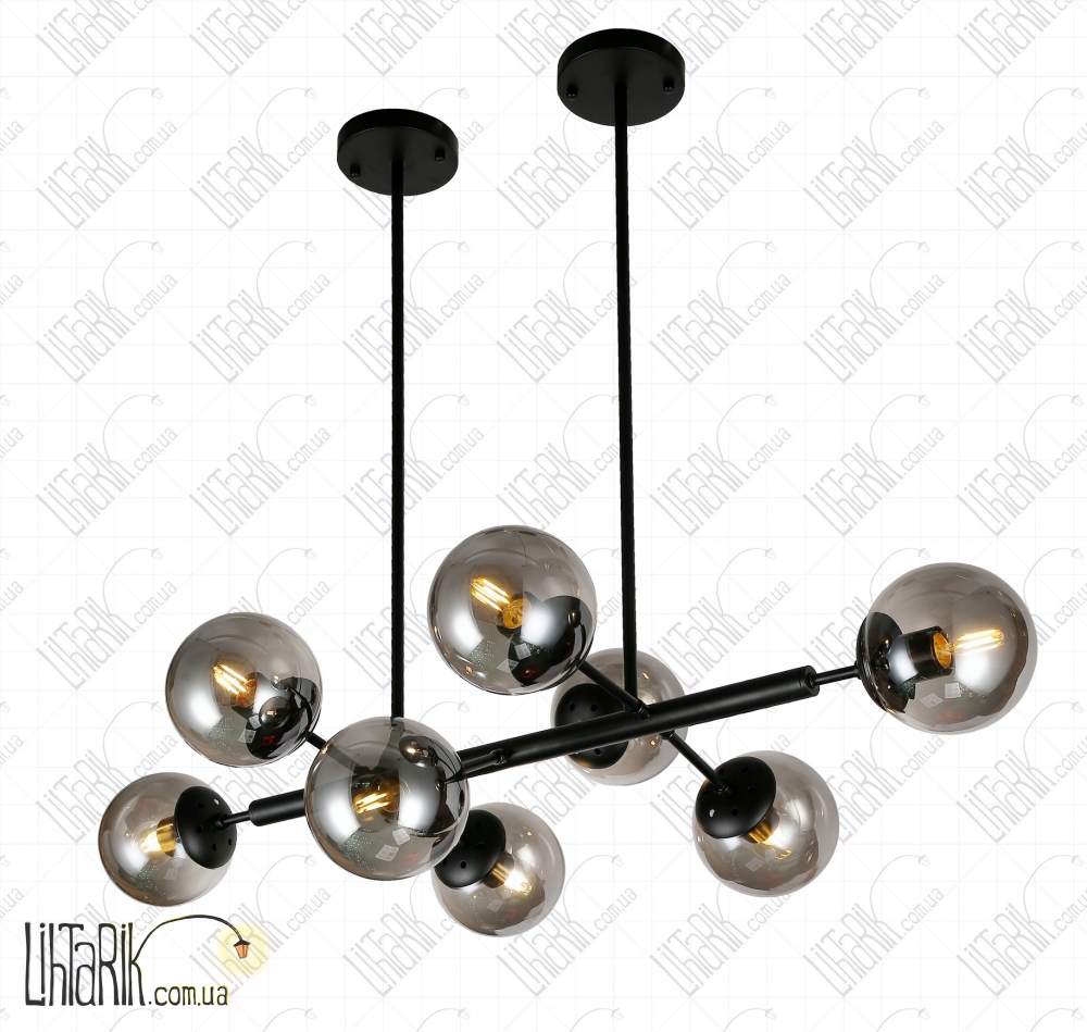 Подвесной светильник круглого (шарообразного) вида впишется в любую дизайнерскую среду. Подходит для вашей гостиной, спальни. Модель представлена в черных тонах. Светильник изготовлен из металла высокого качества