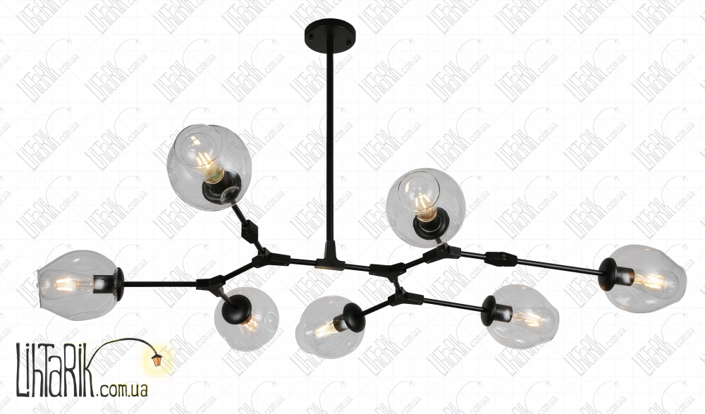Подвесной светильник круглого (шарообразного) вида впишется в любую дизайнерскую среду. Подходит для вашей гостиной, спальни. Модель представлена в прозрачных, черных тонах. Светильник изготовлен из металла высокого качества