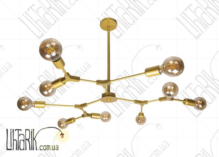 Припотолочная люстра паукообразный дизайн максимально осветит пространство и впишется в любую дизайнерскую среду. Подходит для вашей гостиной, кухни, прихожей, спальни. Модель представлена в золотых тонах. Светильник изготовлен из металла высокого качества