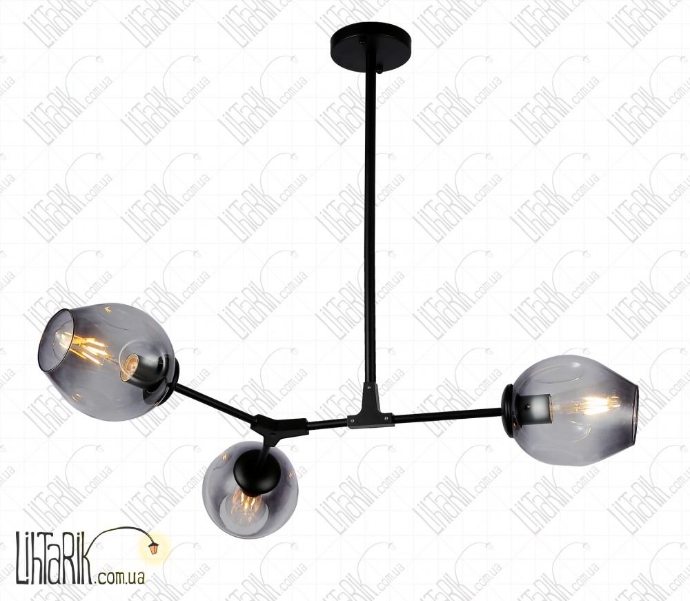 Подвесной светильник круглого (шарообразного) вида впишется в любую дизайнерскую среду. Подходит для вашей гостиной, спальни. Модель представлена в черных тонах. Светильник изготовлен из металла, стекла высокого качества