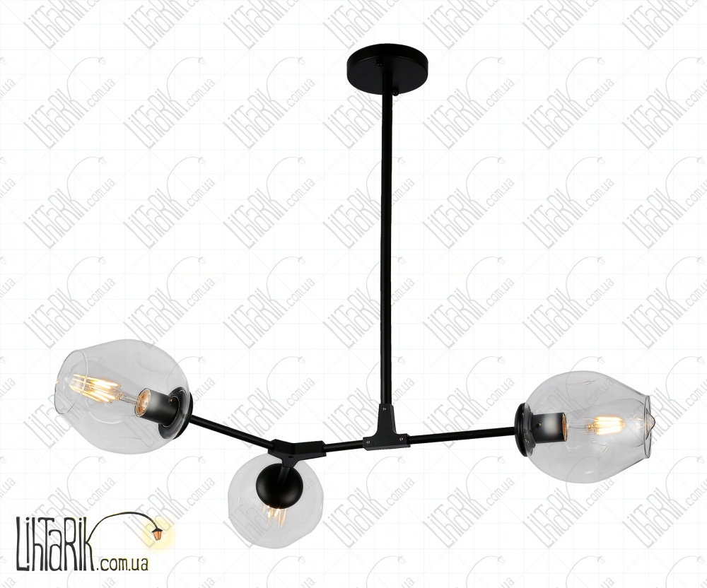 Подвесной светильник круглого (шарообразного) вида впишется в любую дизайнерскую среду. Подходит для вашей гостиной, спальни. Модель представлена в прозрачных, черных тонах. Светильник изготовлен из металла, стекла высокого качества