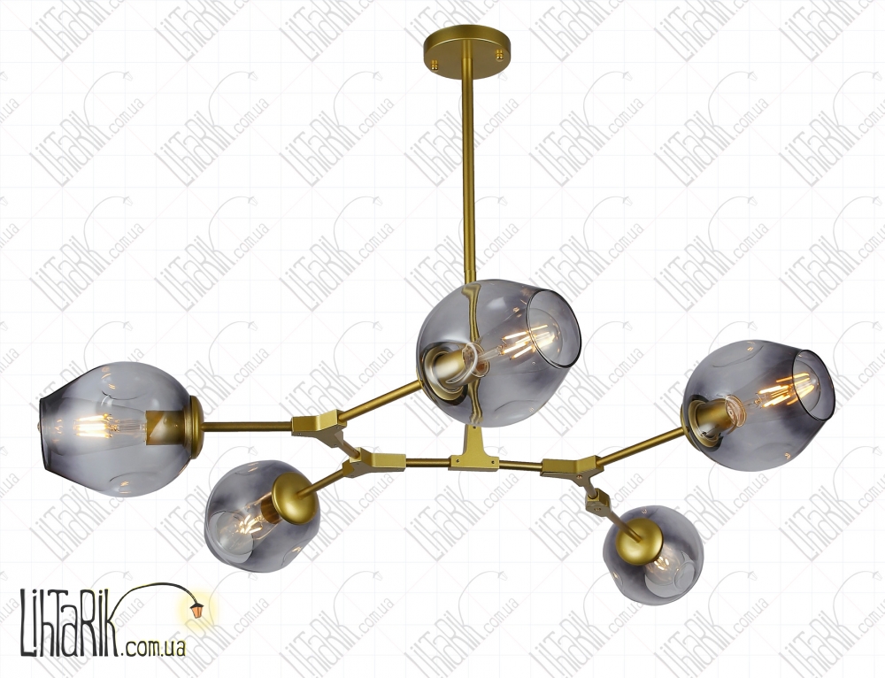 Подвесной светильник круглого (шарообразного) вида впишется в любую дизайнерскую среду. Подходит для вашей гостиной, спальни. Модель представлена в золотых, черных тонах. Светильник изготовлен из металла, стекла высокого качества