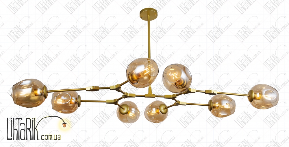Подвесной светильник круглого (шарообразного) вида впишется в любую дизайнерскую среду. Подходит для вашей гостиной, спальни. Модель представлена в золотых тонах. Светильник изготовлен из металла, стекла высокого качества
