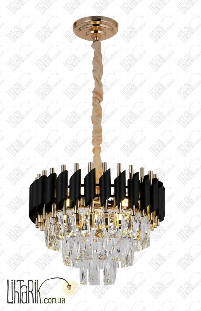 Подвесной светильник бочковидного вида, с выносными лепестками впишется в любую дизайнерскую среду. Подходит для вашей гостиной, спальни. Модель представлена в золотых, черных тонах. Светильник изготовлен из стекла, хрусталя высокого качества