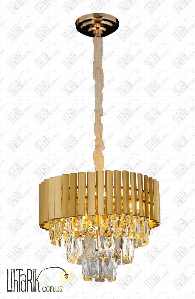 Подвесной светильник бочковидного вида, с хрустальными подвесами, с выносными лепестками впишется в любую дизайнерскую среду. Подходит для вашей гостиной, спальни. Модель представлена в золотых тонах. Светильник изготовлен из стекла, хрусталя высокого качества