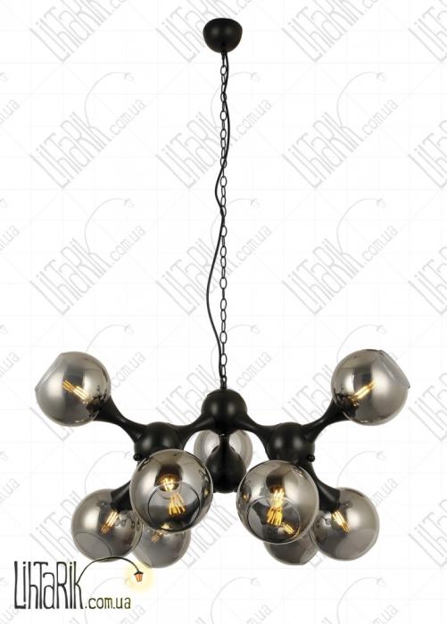 Подвесной светильник, Светильник подвесной круглого (шарообразного) вида впишется в любую дизайнерскую среду. Подходит для вашей гостиной, спальни. Модель представлена в черных тонах. Светильник изготовлен из металла, стекла высокого качества