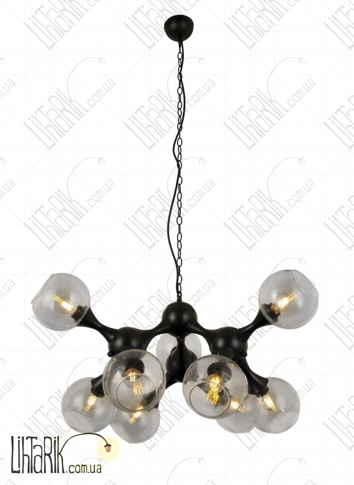 Подвесной светильник, Светильник подвесной круглого (шарообразного) вида впишется в любую дизайнерскую среду. Подходит для вашей гостиной, спальни. Модель представлена в прозрачных, черных тонах. Светильник изготовлен из металла, стекла высокого качества
