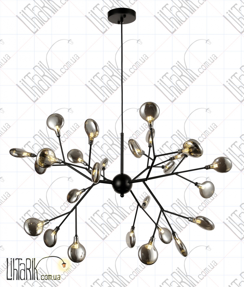 Подвесной светильник оригинальной формы, паукообразный дизайн максимально осветит пространство и впишется в любую дизайнерскую среду. Подходит для вашей гостиной, спальни. Модель представлена в черных тонах. Светильник изготовлен из металла, стекла высокого качества