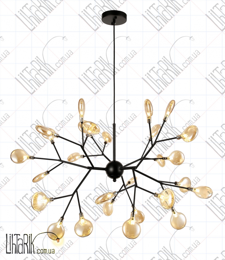 Подвесной светильник оригинальной формы, паукообразный дизайн максимально осветит пространство и впишется в любую дизайнерскую среду. Подходит для вашей гостиной, спальни. Модель представлена в черных тонах. Светильник изготовлен из металла, стекла высокого качества