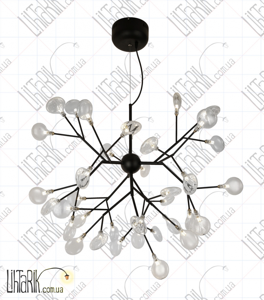 Подвесной светильник оригинальной формы впишется в любую дизайнерскую среду. Подходит для вашей гостиной, спальни. Модель представлена в прозрачных, черных тонах. Светильник изготовлен из металла, стекла высокого качества