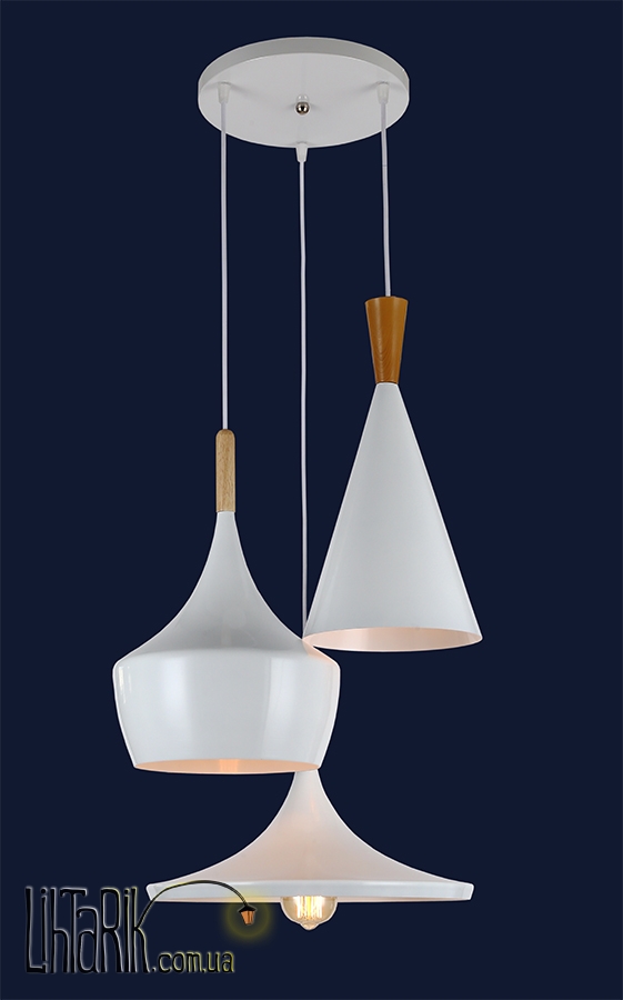 Светильник подвесной бочковидного вида, конусообразной формы, в виде зонта или же купола впишется в любую дизайнерскую среду. Подходит для вашей кухни, прихожей. Модель представлена в белых тонах. Светильник изготовлен из дерева, металла высокого качества
