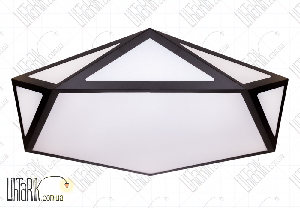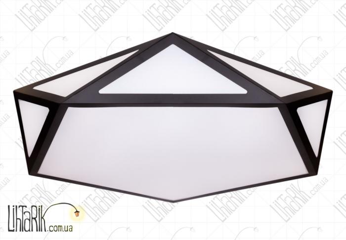 Светильник на потолок бочковидного вида, выполнен в с супер современной геометрической форме (полигонами) впишется в любую дизайнерскую среду. Подходит для вашей гостиной, кухни, прихожей, спальни. Модель представлена в черных тонах. Светильник изготовлен из акрила, металла высокого качества