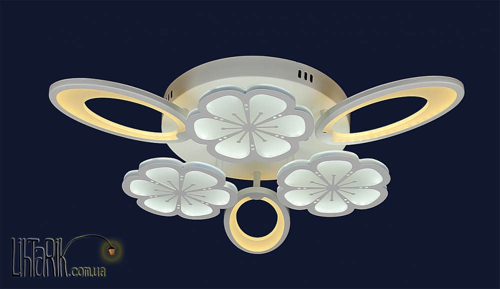 Припотолочная люстра подходит для вашей гостиной, кухни, спальни. Модель представлена в белых тонах. Светильник изготовлен из пластика высокого качества