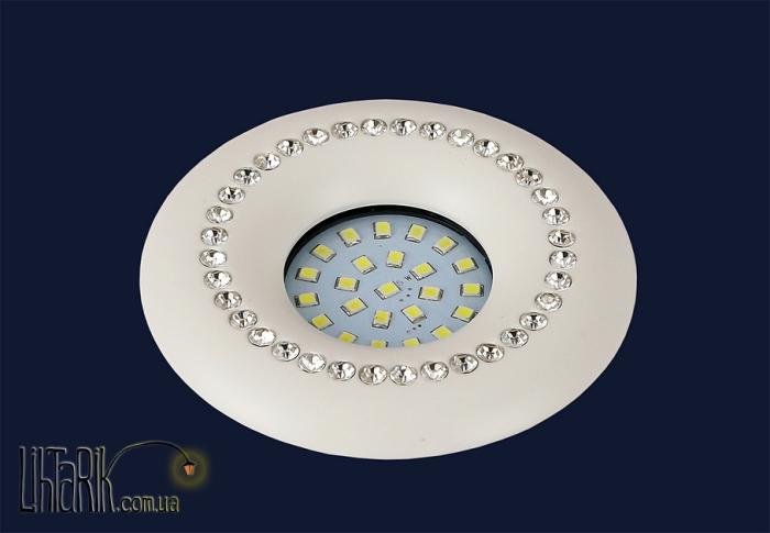 Встраиваемый светильник как плоская тарелка впишется в любую дизайнерскую среду. Подходит для вашей гостиной, кухни, прихожей, спальни. Модель представлена в белых тонах. Светильник изготовлен из металла, стекла высокого качества