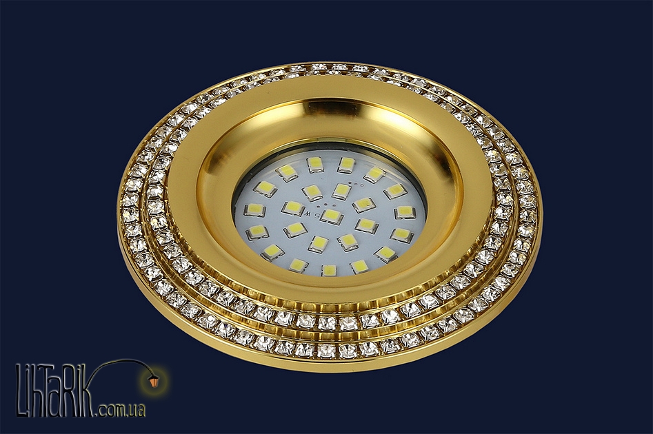 Встраиваемый светильник как плоская тарелка впишется в любую дизайнерскую среду. Подходит для вашей гостиной, кухни, прихожей, спальни. Модель представлена в золотых тонах. Светильник изготовлен из металла, стекла высокого качества