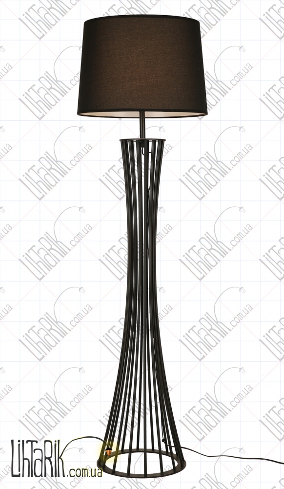Оригинальный торшер с оригинальным абажуром впишется в любую дизайнерскую среду. Подходит для вашей гостиной, спальни. Модель представлена в черных тонах. Светильник изготовлен из металла, ткани высокого качества