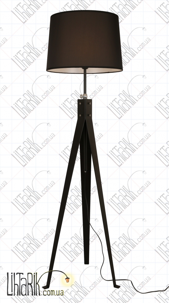 Оригинальный торшер с оригинальным абажуром впишется в любую дизайнерскую среду. Подходит для вашей гостиной, спальни. Модель представлена в черных тонах. Светильник изготовлен из металла, ткани высокого качества