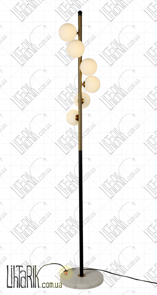 Оригинальный торшер круглого (шарообразного) вида впишется в любую дизайнерскую среду. Подходит для вашей гостиной, спальни. Модель представлена в золотых, черных тонах. Светильник изготовлен из металла, стекла высокого качества