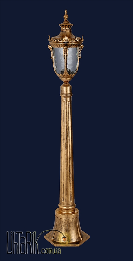 Качественный, оригинальный и прочный столб Модель представлена в медных тонах. Светильник изготовлен из металла, стекла высокого качества