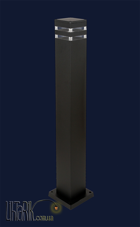 Качественный, оригинальный и прочный столб Модель представлена в черных тонах. Светильник изготовлен из металла, стекла высокого качества
