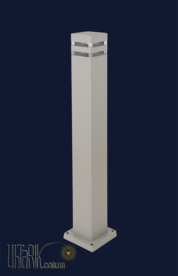 Качественный, оригинальный и прочный столб Модель представлена в серых тонах. Светильник изготовлен из металла, стекла высокого качества