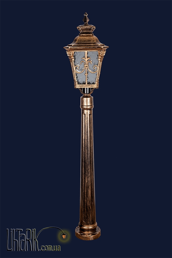 Качественный, оригинальный и прочный столб с рожковыми элементами дизайна впишется в любую дизайнерскую среду. Модель представлена в бронзовых тонах. Светильник изготовлен из металла, стекла высокого качества