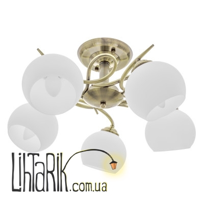 Украсьте свой дом стильной люстрой LK-568S/5 E27 AB. Металлический каркас необычной формы выполнен в цвете старого золота. Белые матовые плафоны в форме шара сделаны из стекла. Люстра будет хорошо смотреться в спальне, гостиной или прихожей. Благодаря универсальной цветовой гамме и лаконичному дизайну она подойдет и к классическому, и к современному стилю интерьера. Для работы люстры нужно использовать 5 лампочек с цоколем E27 мощностью 60 Вт. Подойдут светодиодные, энергосберегающие или лампы накаливания.