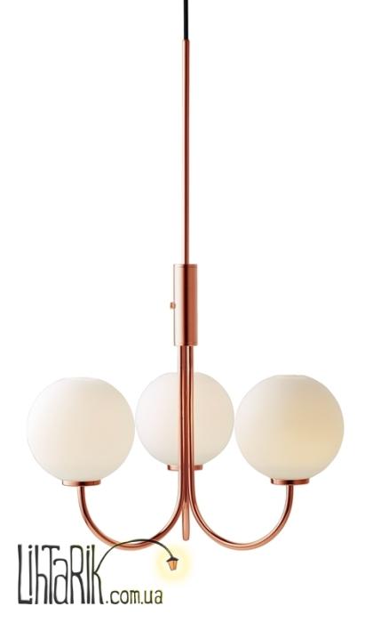 Подвесной светильник, Светильник подвесной круглого (шарообразного) вида впишется в любую дизайнерскую среду. Подходит для вашей гостиной, кухни. Модель представлена в белых, медных тонах. Светильник изготовлен из металла, стекла высокого качества
