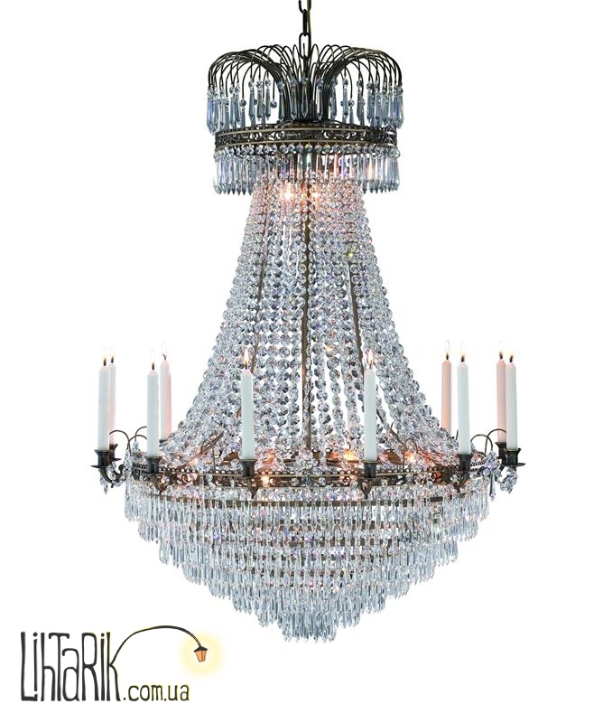 Подвесной светильник в виде свечей, с хрустальными подвесами впишется в любую дизайнерскую среду. Подходит для вашей гостиной. Модель представлена в бронзовых, прозрачных тонах. Светильник изготовлен из металла, хрусталя высокого качества