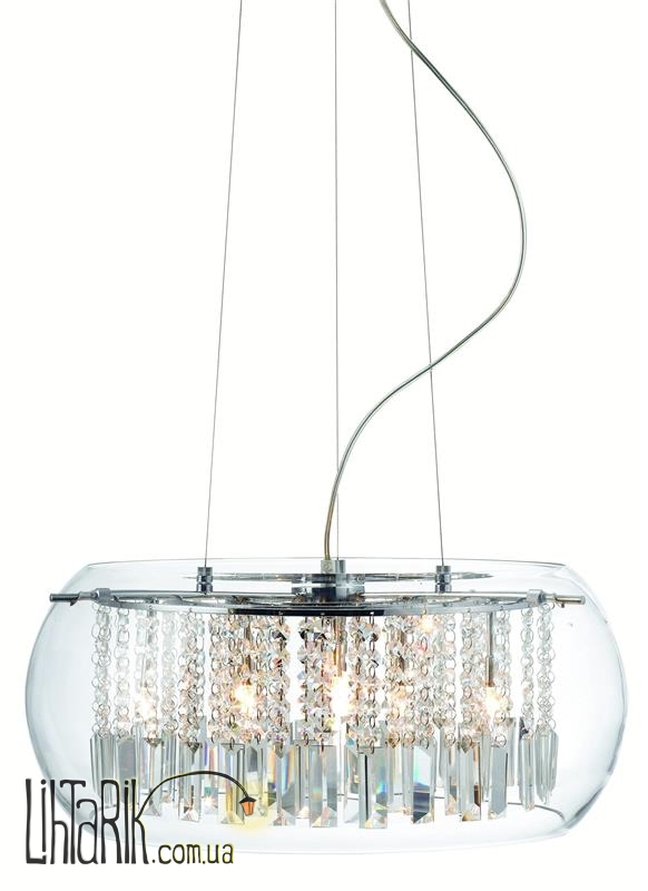Подвесной светильник с хрустальными подвесами впишется в любую дизайнерскую среду. Подходит для вашей гостиной. Модель представлена в прозрачных, хромированных тонах. Светильник изготовлен из металла, хрусталя высокого качества