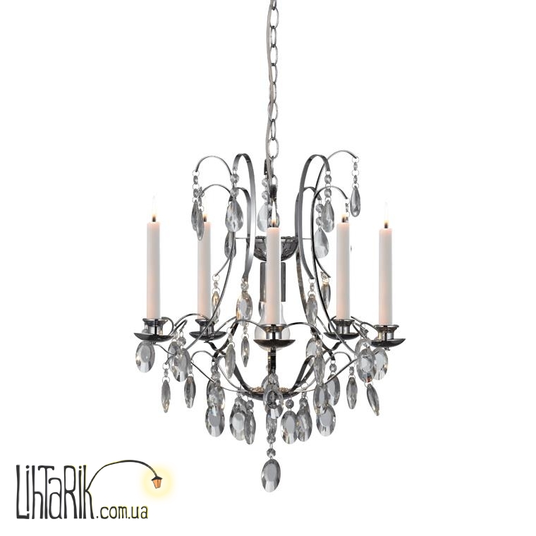 Подвесной светильник в виде свечей, с хрустальными подвесами впишется в любую дизайнерскую среду. Подходит для вашей гостиной. Модель представлена в прозрачных, хромированных тонах. Светильник изготовлен из металла, хрусталя высокого качества