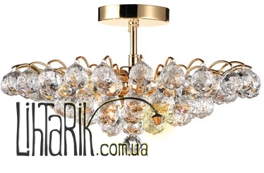 Припотолочная люстра с хрустальными подвесами впишется в любую дизайнерскую среду. Модель представлена в золотых, прозрачных тонах. Светильник изготовлен из металла, хрусталя высокого качества