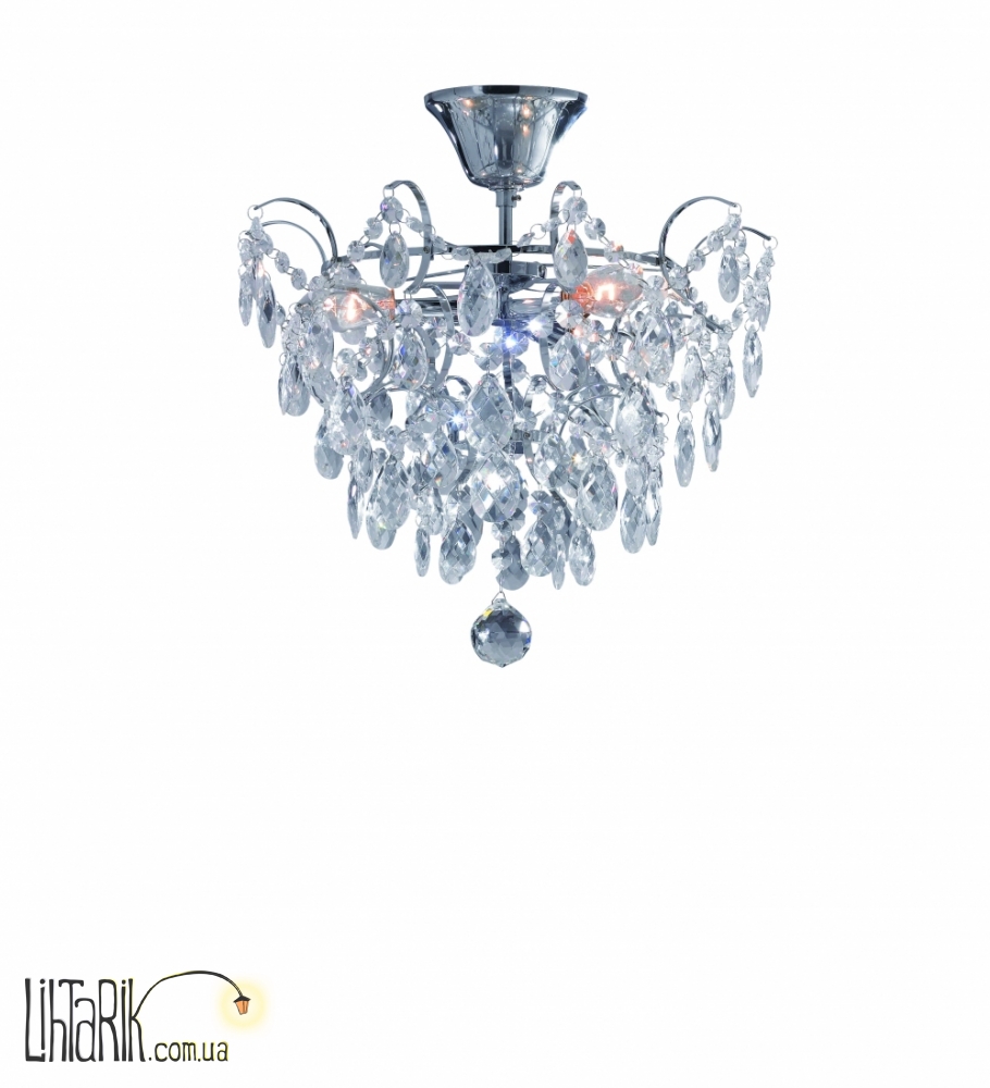 Припотолочная люстра с хрустальными подвесами впишется в любую дизайнерскую среду. Подходит для вашей гостиной. Модель представлена в прозрачных, хромированных тонах. Светильник изготовлен из металла, хрусталя высокого качества