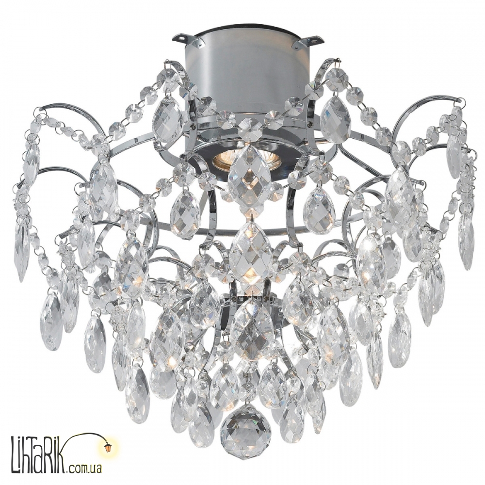 Припотолочная люстра с хрустальными подвесами впишется в любую дизайнерскую среду. Подходит для вашей гостиной. Модель представлена в прозрачных, хромированных тонах. Светильник изготовлен из металла, хрусталя высокого качества