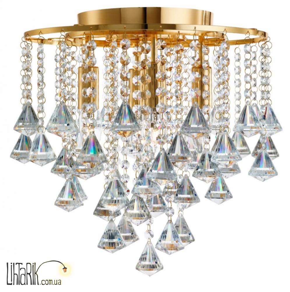 Подвесной светильник, Припотолочная люстра с хрустальными подвесами впишется в любую дизайнерскую среду.