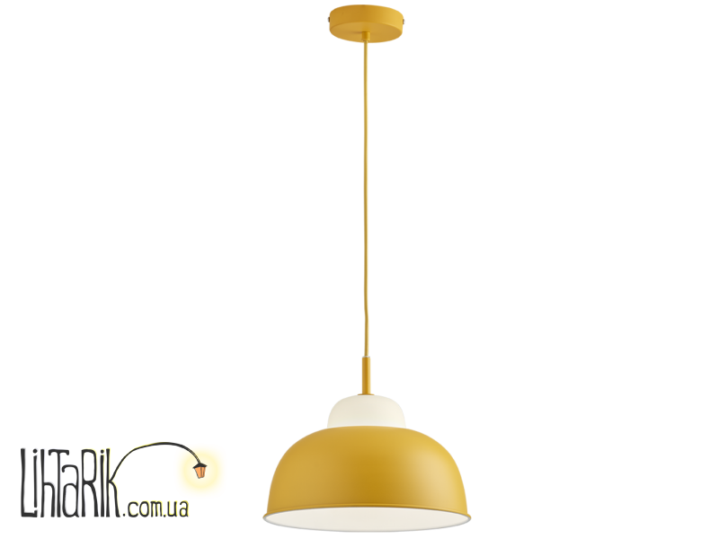 Подвесной светильник, Светильник подвесной в виде зонта или же купола впишется в любую дизайнерскую среду. Модель представлена в желтых тонах.