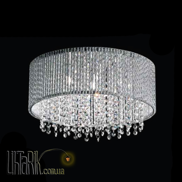 Подвесной светильник, Припотолочная люстра бочковидного вида впишется в любую дизайнерскую среду. Модель представлена в хромированных тонах.