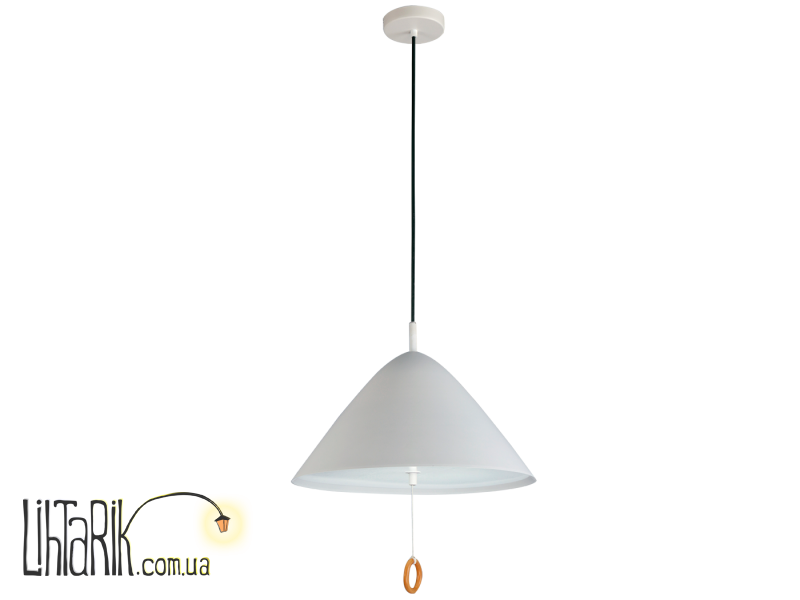 Подвесной светильник, Светильник подвесной конусообразной формы впишется в любую дизайнерскую среду. Модель представлена в белых тонах.