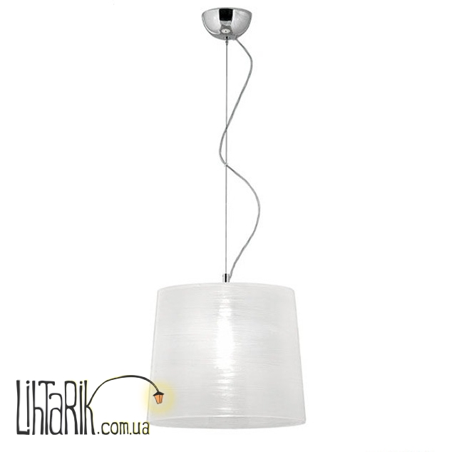 Светильник подвесной бочковидного вида впишется в любую дизайнерскую среду. Модель представлена в белых тонах.