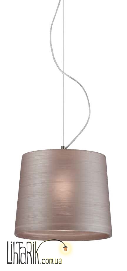 Светильник подвесной бочковидного вида впишется в любую дизайнерскую среду. Модель представлена в розовых тонах.